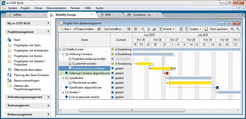 You can manage your projects with many tools. If you want to support not only the project manager but the entire project team, if results are as important to you as dates – then the project management tool in-STEP BLUE is the right choice.