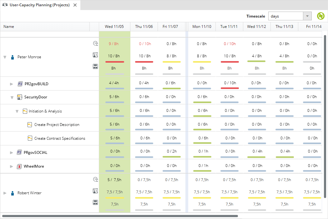 Have an immediate overview of resource utilization in your organization and keep track of free and overtaxed capacities.