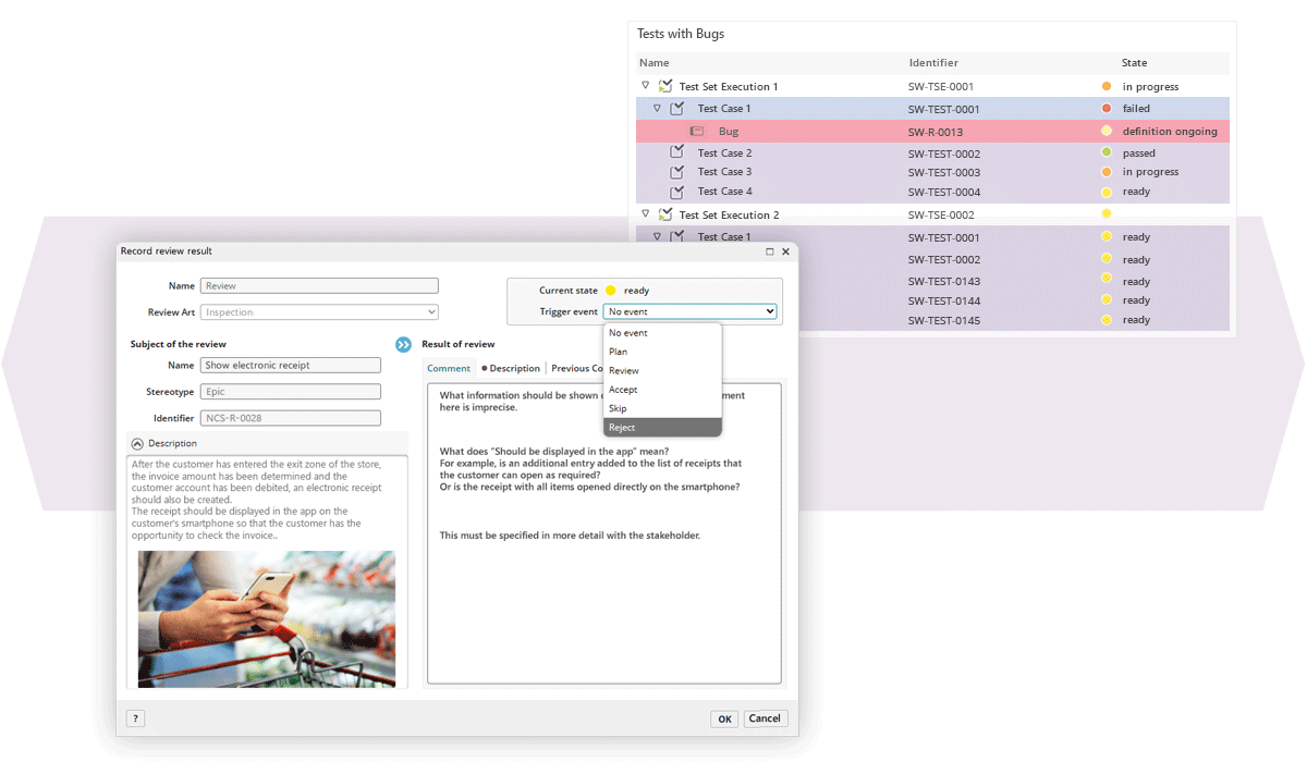 Exchange requirements and results easily with customers and suppliers using import and export via Excel, Word, or ReqIF.